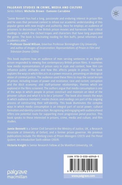 "This book is an exciting read, not only for its remarkable content but because of the opportunities for future research. ... This study is clearly limited by time, number and type of participants, but these limitations do not prevent the study from breaking new ground in an innovative area, allowing imprisoned people to return and refute the voyeuristic cinematic gaze." (Holly Dempsey, Crime Media Culture, April 12, 2021)