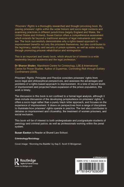 Prisoners' Rights: Principles and Practice considers prisoners' rights from socio-legal and philosophical perspectives, and assesses the advantages and problems of a rights-based approach to imprisonment. At a time of record levels of imprisonment and projected future expansion of the prison population, this work is timely. The discussion in this book is not confined to a formal legal analysis, although it does include discussion of the developing jurisprudence on prisoners' rights. It offers a socio-legal rather than a purely black letter approach, and focuses on the experience of imprisonment. It draws on perspectives from a range of disciplines to illuminate how prisoners' rights operate in practice. The text also contributes to debates on imprisonment and citizenship, the treatment of women prisoners, and social exclusion. This book will be of interest to both undergraduate and postgraduate students of penology and criminal justice, as well as professionals working within the penal system.