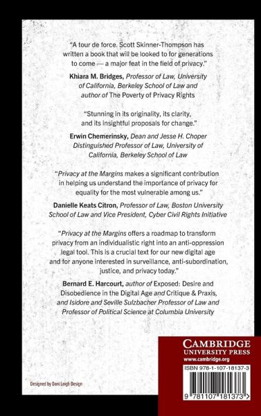Scott Skinner-Thompson presents a vivid account of how privacy can serve as a tool of resistance and equality worthy of constitutional protection. Examining how the lives of minority groups are uniquely harmed by surveillance regimes, this book shows how even limited privacy can enhance lives at the margins in material ways.