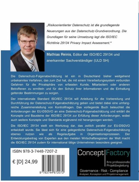 Die Datenschutz-Folgenabschätzung ist ein in Deutschland bisher weitgehend unbekanntes Verfahren, das zum Ziel hat, die mit einem Verarbeitungssystem verbunden Gefahren für die Privatsphäre von erfassten Kunde, Mitarbeitern oder anderen Betroffenen zu ermitteln und für den Schutz ihrer Informationen und die Einhaltung geltender Bestimmungen zu sorgen.Der internationale Standard ISO/IEC 29134 will Anleitung für die Vorbereitung und Durchführung der Datenschutz-Folgenabschätzung geben und bietet dabei eine umfangreiche Zusammenstellung von Kontrollfragen. Das vorliegende Buch beleuchtet die Anforderungen der EU-DSGVO an eine Datenschutz-Folgenabschätzung und erklärt die Konzepte und Bausteine der ISO/IEC 29134 zur Erfüllung dieser Anforderungen, wobei auch weitere Konzepte und Standards ergänzend mit herangezogen werden.Die ISO/IEC 29134 stellt ein Werkzeug dar, das zeitlich parallel zur EU-DSGVO entwickelt wurde. Sie lässt sich für eine gelegentliche Datenschutz-Folgenabschätzung ebenso nutzen wie als Regelaufgabe in Organisationsprozessen. Der Entwicklungsbeitrag von Experten aus den meisten Wirtschaftsregionen der Welt macht die ISO/IEC 29134 zudem für international tätige Unternehmen besonders geeignet.