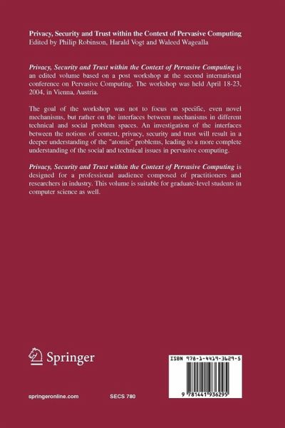 Privacy, Security and Trust within the Context of Pervasive Computing is an edited volume based on a post workshop at the second international conference on Pervasive Computing. The workshop was held April18-23, 2004, in Vienna, Austria.