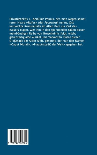 Privatdetektiv L. Aemilius Paulus, den man wegen seiner roten Haare »Rufus« (der Fuchsrote) nennt, löst verzwickte Kriminalfälle im Alten Rom zur Zeit des Kaisers Trajan. Wer ihm in den spannenden Fällen dieser mehrbändigen Reihe von Gruselkrimis folgt, erlebt gleichzeitig alle Winkel und markanten Plätze dieser Großstadt der Alten Welt, der man den Namen »Caput Mundi«, »Haupt(stadt) der Welt« gegeben hat.Zunächst begleiten wir Roms berühmten Privatdetektiv L. Aemilius Paulus ins kleine Städtchen Tibur (Tivoli) bei Rom; dort ist ein ehemaliger Seemann glatt an die Wand gespießt worden; Hauptmann Galba, der mit dem Mordfall betraut ist, kommt nicht recht weiter und bittet Rufus samt seinem Freund Sokrates um Mitarbeit; auf getrennten Wegen kommt unser Terzett der Lösung des grausigen Geschehens näher, aber ohne Rufus' Scharfsinn hätte man die Angelegenheit, in der eine mörderische Gladiatorin als Hauptperson auftaucht, ungelöst zu den Akten gelegt ...