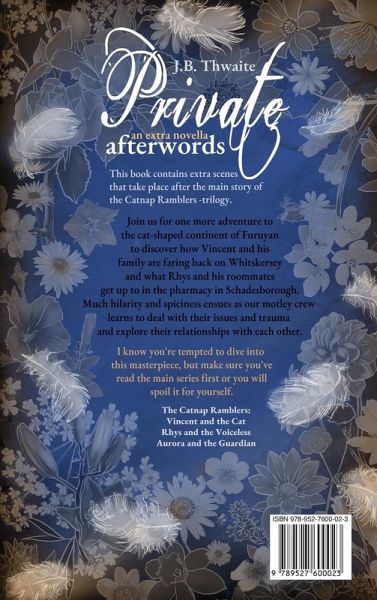 This book was written as thanks to all the lovely people who took a chance on the author's whimsical debut series the Catnap Ramblers. It contains some delicious complimentary scenes that take place after the main story. If you felt the series could have used a bit more spice and wanted to get the juicy details of where the characters' relationships were heading, this novella is definitely for you! It also includes all the maps and six new character illustrations. ¿¿Join us for one more adventure to the cat-shaped continent of Furuyan to discover how Vincent and his family are faring back on Whitskersey and what Rhys and his roommates are up to in the pharmacy in Schadesborough. There are many hilarious and sweet moments in store for you as our motley cast of lovable characters learn to deal with their issues and trauma and explore their relationships with each other. If you haven't read the Catnap Ramblers yet, please do so before reading this novella!