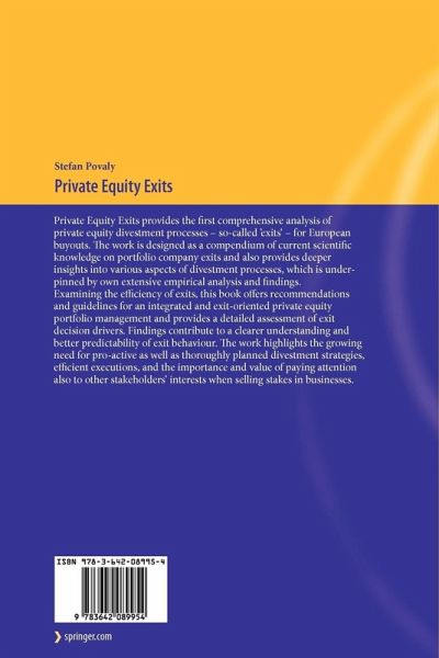 Examining the efficiency of exits, this book offers recommendations and guidelines for an integrated and exit-oriented private equity portfolio management and provides a detailed assessment of exit decision drivers. Findings contribute to a clearer understanding and better predictability of exit behavior. The work highlights the growing need for pro-active as well as thoroughly planned divestment strategies, efficient executions, and the importance and value of paying attention also to other stakeholders' interests when selling stakes in businesses.