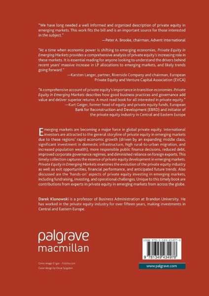 "We have long needed a well informed and organized description of private equity in emerging markets. This work fits the bill and is an important source for those interested in the subject." - Peter A. Brooke, chairman, Advent International