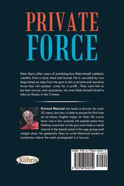 Peter Stern, after years of practicing law, finds himself suddenly wealthy from a stock deal and bored. He is recruited by two disgruntled ex-cops from the gym to join a private and secretive force that will combat crime for a profit. They want him to be their lawyer and conscience. He even finds himself hired to take on Russia in the Crimea.