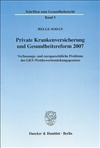 Nach monatelangen heftigen Auseinandersetzungen um die Gesundheitsreform liegt nunmehr der Entwurf eines "Gesetzes zur Stärkung des Wettbewerbs in der GKV" vor. Dieser Entwurf enthält auch Regelungen, die das Recht der PKV nachhaltig ändern. Dazu gehören die verpflichtende Einführung eines Basistarifs mit Kontrahierungszwang ohne vorangegangene Risikoprüfung und die Anrechnung der Alterungsrückstellungen eines in der PKV Versicherten bei einem Wechsel des Versicherers im Umfang des Basistarifs. Eine finanzielle Unterstützung der Krankenversicherung von Kindern aus Steuermitteln ist nur für die GKV und nicht auch für die PKV vorgesehen. Die genannten Maßnahmen stoßen auf schwerwiegende verfassungs- und europarechtliche Einwände, die in der aktuellen Schrift von Helge Sodan eingehend dargelegt werden.