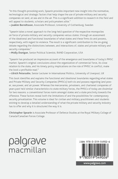 This book identifies and explains the functional and ideational boundaries regarding what states and Private Military and Security Companies (PMSCs) both do and possess regarding land power, sea power, and air power. Whereas the mercenaries, privateers, and chartered companies of years past held similar characteristics to state military forces, the PMSCs of today are dissimilar for two reasons: a conventional forces norm amongst states and a state proclivity towards the offensive. These factors reveal both the limitations of and the possibilities for contemporary security privatization. This volume is ideal for civilian and military practitioners and students wishing to develop a detailed understanding of what the private military and security industry has to offer and why it is structured the way it is.