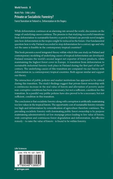 "The purpose of the book is to present a 'universal forest transition theory' and to apply this theory ex post (looking back) to forest transition in Finland during the past hundred years and ex ante (looking ahead) to contemporary tropical deforestation. ... The book, which contains a wealth of experience, useful data and references to related scientific studies, is considered indispensible for graduate students of political science, international forestry, geography, environment science and related fields. ... It should be available in all relevant research libraries." (Klaus von Gadow, Forstarchiv, Vol. 83 (5), 2012)
