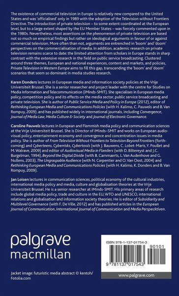Foreword; Philippe Delusinne 1. Long Live Television; Christian Van Thillo PART I: EUROPEAN AND NATIONAL EXPERIENCES 2. Private Television in Europe - A New Beginning or the Beginning of the End?; Karen Donders, Jan Loisen and Caroline Pauwels 3. Opening up Europe to Private Television - Harmonization and Liberalization to the Benefit of All?; Caroline Pauwels and Karen Donders 4. 30 Years of Private Television in Europe - Trends and Key Moments; Maria Michalis 5. Private Television in France: a Story of Political Intervention; Raymond Kuhn 6. Private Television in the United Kingdom: a Story of Ownership Integration; Gillian Doyle 7. Private Television in Small European States: Ireland, Austria and Switzerland; Manuel Puppis and Matthias Kuenzler PART II: CONTENT (AND) MARKETS 8. Children's Television: a Comparative Analysis of Offers on Free-to-air Television in the United Kingdom and Finland; Mikko Sihvonen 9. Children's Television: Markets and Regulation; Allessandro D'Arma and Jeanette Steemers 10. Television Sports Rights: between Culture and Commerce; Petros Iosifidis and Paul Smith 11. Format is King: Television Formats and Commercialization; Andrea Esser 12. Business Model Issues for the Digital Video Content Industry; Olivier Braet 13. The Political Economy of Retransmission Payments and Cable Rights: Implications for Private Television Companies; Tom Evens PART III: POLICIES 14. Best Friennemies Forever? Public and Private Broadcasting Partnerships in Flanders; Tim Raats 15. Fighting a (Lost) Battle? An Analysis of 20 Years of Private Television Complaints Against the Funding of Public Service Broadcasting; Karen Donders 16. The Thin Blue Line between Monitoring Advertising Rules and Commercial Freedom in Broadcasting: the Case Study of Product Placement; Katrien Lefever 17. Content Quotas: What and Whom are They Protecting?; Sally Broughton Micova 18. From Independence of Audiovisual Media Regulators to Europeanization of Audiovisual MediaRegulation: Reaching for Apples of the Hesperides?; Anna Herold