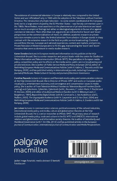 Foreword; Philippe Delusinne 1. Long Live Television; Christian Van Thillo PART I: EUROPEAN AND NATIONAL EXPERIENCES 2. Private Television in Europe - A New Beginning or the Beginning of the End?; Karen Donders, Jan Loisen and Caroline Pauwels 3. Opening up Europe to Private Television - Harmonization and Liberalization to the Benefit of All?; Caroline Pauwels and Karen Donders 4. 30 Years of Private Television in Europe - Trends and Key Moments; Maria Michalis 5. Private Television in France: a Story of Political Intervention; Raymond Kuhn 6. Private Television in the United Kingdom: a Story of Ownership Integration; Gillian Doyle 7. Private Television in Small European States: Ireland, Austria and Switzerland; Manuel Puppis and Matthias Kuenzler PART II: CONTENT (AND) MARKETS 8. Children's Television: a Comparative Analysis of Offers on Free-to-air Television in the United Kingdom and Finland; Mikko Sihvonen 9. Children's Television: Markets and Regulation; Allessandro D'Arma and Jeanette Steemers 10. Television Sports Rights: between Culture and Commerce; Petros Iosifidis and Paul Smith 11. Format is King: Television Formats and Commercialization; Andrea Esser 12. Business Model Issues for the Digital Video Content Industry; Olivier Braet 13. The Political Economy of Retransmission Payments and Cable Rights: Implications for Private Television Companies; Tom Evens PART III: POLICIES 14. Best Friennemies Forever? Public and Private Broadcasting Partnerships in Flanders; Tim Raats 15. Fighting a (Lost) Battle? An Analysis of 20 Years of Private Television Complaints Against the Funding of Public Service Broadcasting; Karen Donders 16. The Thin Blue Line between Monitoring Advertising Rules and Commercial Freedom in Broadcasting: the Case Study of Product Placement; Katrien Lefever 17. Content Quotas: What and Whom are They Protecting?; Sally Broughton Micova 18. From Independence of Audiovisual Media Regulators to Europeanization of Audiovisual MediaRegulation: Reaching for Apples of the Hesperides?; Anna Herold