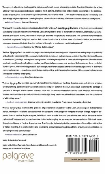 "Grzegorczyk effectively challenges the status quo of much recent scholarship in Latin American literature by writing a literary narrative organized around space as much as time, the historical and domestic experience of the postcolonial body as much as the memorial experience of the postcolonial mind... The book combines sound scholarship with a strikingly original argument, startling insights, beautiful close readings, and astute uses of historical background." - Roland Greene, Stanford University