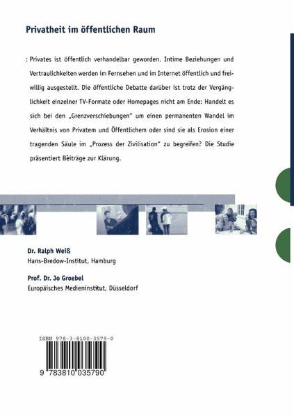 1 Privatheit im "öffentlichen Raum" - Klärungsbedarf.- I: Privatheit im Wandel.- 2 Vom gewandelten Sinn für das Private.- 3 Blick über die Grenzen: Transkulturelle Perspektiven auf eine globale Entwicklung.- 4 Post-Privacy America.- II: Privates in Fernsehen und Internet.- 5 Formatiertes Privatleben: Muster der Inszenierung von Privatem in der Programmgeschichte des deutschen Fernsehens.- 6 Konflikte um die Selbstbeschreibung der Gesellschaft: Der Diskurs über Privatheit im Fernsehen.- 7 Der private Mensch in der Netzwelt.- 8 Zwischenruf: Präsenzelite oder die Demokratisierung der Prominenz.- 9 Schluss: Entgrenzte Schaustellung - öffentlich verfügbares Selbst?.- 10 Werkstattbericht: Interdisziplinärer Diskurs über den Wandel der Privatheit und die Rolle der Medien.- 11 Verzeichnis der verwendeten Literatur.