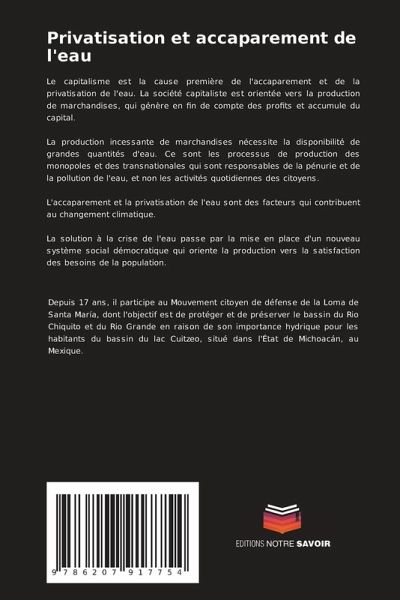 Le capitalisme est la cause première de l'accaparement et de la privatisation de l'eau. La société capitaliste est orientée vers la production de marchandises, qui génère en fin de compte des profits et accumule du capital.La production incessante de marchandises nécessite la disponibilité de grandes quantités d'eau. Ce sont les processus de production des monopoles et des transnationales qui sont responsables de la pénurie et de la pollution de l'eau, et non les activités quotidiennes des citoyens.L'accaparement et la privatisation de l'eau sont des facteurs qui contribuent au changement climatique.La solution à la crise de l'eau passe par la mise en place d'un nouveau système social démocratique qui oriente la production vers la satisfaction des besoins de la population.