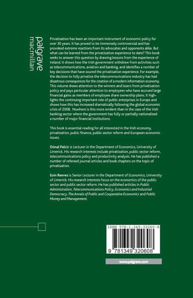 This book analyzes privatization in Ireland, a European economy that has experienced rapidly changing fortunes over the last thirty years. It examines the effects of privatization in terms of corporate performance, public finances and the distributional aspects of privatization including the impact on employment and share ownership.