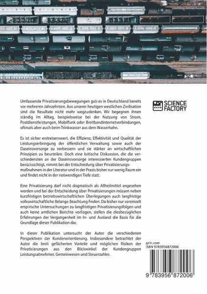 Umfassende Privatisierungsbewegungen gab es in Deutschland bereits vor mehreren Jahrzehnten. Aus unserer heutigen westlichen Zivilisation sind die Resultate nicht mehr wegzudenken. Wir begegnen ihnen ständig im Alltag, beispielsweise bei der Nutzung von Strom, Postdienstleistungen, Mobilfunk oder Breitbandinternetverbindungen, oftmals aber auch beim Trinkwasser aus dem Wasserhahn. Es ist sicher erstrebenswert, die Effizienz, Effektivität und Qualität der Leistungserbringung der öffentlichen Verwaltung sowie auch der Daseinsvorsorge zu verbessern und sie stärker an wirtschaftlichen Prinzipien zu beurteilen. Doch eine kritische Diskussion, die die verschiedensten an der Daseinsvorsorge interessierten Kundengruppen berücksichtigt, nimmt bei der Entscheidung über Privatisierungsmaßnahmen in der Literatur und in der Praxis bisher nur wenig Raum ein und findet nicht in der notwendigen Tiefe statt.Eine Privatisierung darf nicht dogmatisch als Allheilmittel angesehen werden und bei der Entscheidung über Privatisierungen müssen neben kurzfristigen betriebswirtschaftlichen Überlegungen auch langfristige volkswirtschaftliche Belange Beachtung finden. Da bisher nur vereinzelt empirische Untersuchungen zu langfristigen Privatisierungsfolgen und auch keine amtlichen Berichte vorliegen, stellen die diesbezüglichen Erfahrungen der Vergangenheit im In- und Ausland die Basis für die Grundlage dieser Publikation dar.In dieser Publikation untersucht der Autor die verschiedenen Perspektiven der Kundenorientierung. Insbesondere betrachtet der Autor die breit gefächerten Vorteile und möglichen Risiken der Privatisierungen aus den Blickwinkel der Kundengruppen Leistungsabnehmer, Gemeinwesen und Steuerzahler.Aus dem Inhalt:-Privatisierung;-Kundenorientierung;-öffentliche Grundversorgung;-Outsourcing