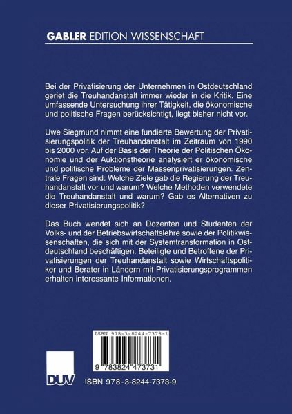 Reichlich zehn Jahre nach der Vereinigung hat Ostdeutschland wirtschaftlich bei weitem noch nicht zu Westdeutschland aufgeschlossen. Das war bei realistischer Wertung der Ausgangslage in so kurzer Zeit auch nicht zu erwarten. Aus ökonomischer Sicht sind im Zuge der Vereinigung jedoch auch gravierende Fehler begangen worden; sie belasten die Entwicklung der ostdeutschen Wirtschaft bis heute. Immer wieder wurde darauf verwiesen, dass die Zeit drängte, und so seien manche Fehler unter dem Zwang zu raschem Handeln nicht zu vermeiden gewesen. So sei es unumgänglich gewesen, in Ostdeutschland rasch und zur Gänze das westdeutsche Regelwerk an Gesetzen und sonstigen Vorschriften sowie die dazugehörigen Institutionen zu übernehmen, um einen einheitlichen Wirtschaftsraum zu verwirklichen. Die Tatsache, dass damit die ostdeutsche Wirtschaft in das gleiche Korsett von Regulierungen gezwungen wurde, das bereits in Westdeutschland Marktkräfte gefesselt hatte, habe in Kauf genommen werden müssen. Manche der Fehler, zu denen es kam, mögen sich bei einem Abwägen auch aus ökonomischer Sicht rechtfertigen lassen, weil es realistische Handlungsalternativen für die Politik nicht gab. Aber in der Politik sind nicht allein oder sogar vornehmlich die gesamtwirtschaftlichen Nach und Vorteile ausschlaggebend für Handeln. In der Politik geht es immer auch um spezifische Gruppeninteressen und um Machterhalt. So werden nicht selten Wege verworfen, weil andere Wege zwar geringere volkswirtschaftliche, aber größere politische Gewinne versprechen. Am Beginn der Vereinigung war eine Entscheidung darüber zu treffen, wie mit den staatseigenen Betrieben und sonstigem Vermögen der DDR umzugehen sei.