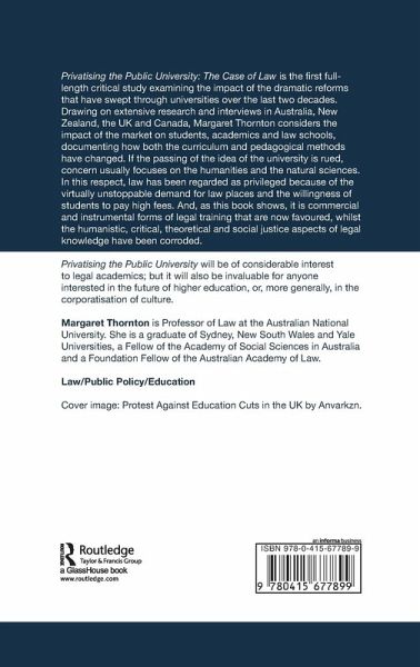 Privatising the Public University: The Case of Law is the first full-length critical study examining the impact of the dramatic reforms that have swept through universities over the last two decades.