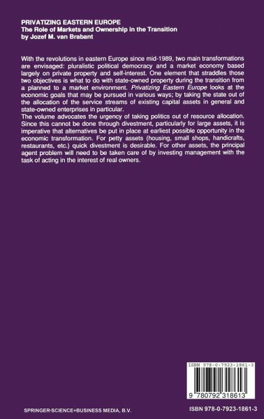 With the revolutions in eastern Europe since mid-1989, two main transformations are envisaged: pluralistic political democracy and a market economy based largely on private property and self-interest. One element that straddles those two objectives is what to do with state-owned property during the transition from a planned to a market environment. Privatizing Eastern Europe looks at the economic goals that may be pursued in various ways: by taking the state out of the allocation of the service streams of existing capital assets in general and state-owned enterprises in particular.