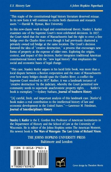 In this now-classic work in legal and constitutional theory, Stanley Kutler examines one of the Supreme Court's most celebrated decisions: the right of the state of Massachusetts to erect a free bridge over the Charles River in 1837--even though the state had previously chartered a privately owned toll bridge at the same location. (Legal Reference)