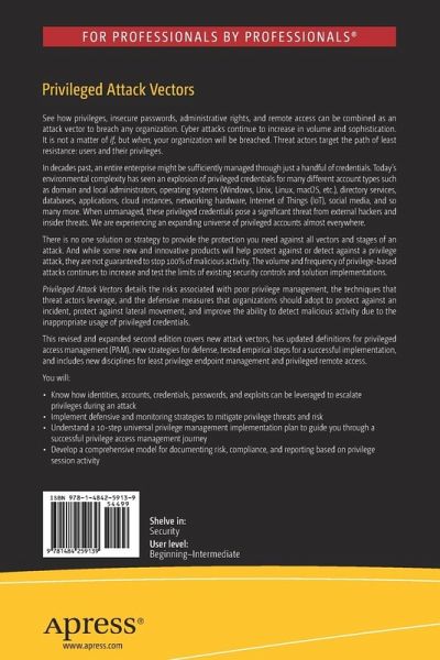 This revised and expanded second edition covers new attack vectors, has updated definitions for privileged access management (PAM), new strategies for defense, tested empirical steps for a successful implementation, and includes new disciplines for least privilege endpoint management and privileged remote access.