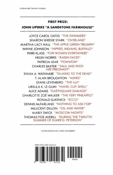 The O. Henry Prize Stories 1991 collects 20 of the best short stories of the year, selected from thousands published in literary magazines. "The Sandstone Farmhouse" by John Updike, which tells of a difficult relationship of a son and his mother over 50 years, takes the coveted top prize. The other stories in this collection are: Joyce Carol Oates "The Swimmers" Sharon Sheehe Stark "Overland" Martha Lacy Hall "The Apple-Green Triumph" Wayne Johnson "Hippies, Indians, Buffalo" Perri Klass "For Women Everywhere" Helen Norris "Raisin Faces" Patricia Lear "Powwow" Charles Baxter "Saul and Patsy Are Pregnant" Sylvia A. Watanabe "Talking to the Dead" T. Alan Broughton "Ashes" Diane Levenberg "The Ilui" Ursula K. Le Guin "Hand, Cup, Shell" Alice Adams "Earthquake Damage" Charlotte Zoë Walker "The Very Pineapple" Ronald Sukenick "Ecco" Dennis McFarland "Nothing to Ask For" Millicent Dillon "Oil and Water" Marly Swick "Moscow Nights" Thomas Fox Averill "During the Twelfth Summer of Elmer D. Peterson" "This collection is both meritorious and diverse. The work ranges from plainly written stories brimming with resonant significance to full-blown extravaganzas. . . . Recommended."-Library Journal