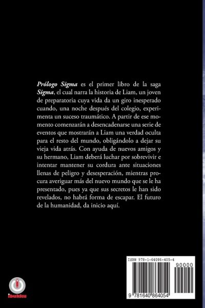 Prólogo Sigma es el primer libro de la saga Sigma, el cual narra la historia de Liam, un joven de preparatoria cuya vida da un giro inesperado cuando, una noche después del colegio, experimenta un suceso traumático. A partir de ese momento comenzarán a desencadenarse una serie de eventos que mostrarán a Liam una verdad oculta para el resto del mundo, obligándolo a dejar su vieja vida atrás. Con ayuda de nuevos amigos y su hermano, Liam deberá luchar por sobrevivir e intentar mantener su cordura ante situaciones llenas de peligro y desesperación, mientras procura averiguar más del nuevo mundo que se le ha presentado, pues ya que sus secretos le han sido revelados, no habrá forma de escapar. El futuro de la humanidad, da inicio aquí.