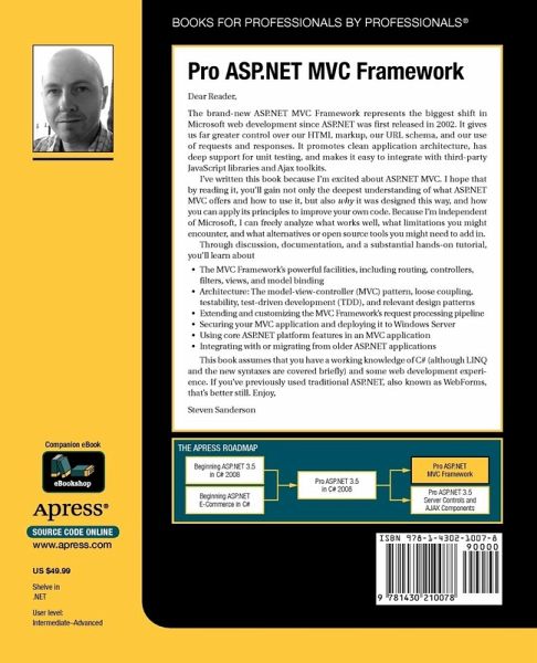 Steven Sanderson has seen the ASP.NET MVC framework mature from the start, so his experience, combined with comprehensive coverage of all its features, including those in the official MVC development toolkit, offers the clearest understanding of how this exciting framework could improve your coding efficiency-and you'll gain invaluable awareness of security, deployment, and interoperability challenges.