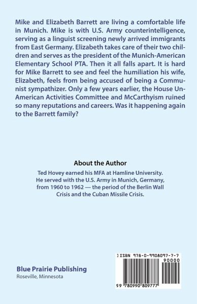 Mike and Elizabeth Barrett are living a comfortable life in Munich. Mike is with U.S. Army counterintelligence, serving as a linguist screening newly arrived immigrants from East Germany. Elizabeth takes care of their two children and serves as the president of the Munich-American Elementary School. Then it all falls apart. It is hard for Mike Barrett to see and feel the humiliation his wife, Elizabeth, feels from being accused of being a Communist sympathizer. Only a few years earlier, the House Un-American Activities Committee and McCarthyism ruined so many reputations and careers. Was it happening again to the Barrett family?