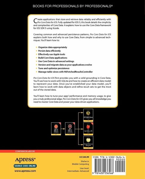 Fully updated for Xcode 4.2, Pro Core Data for iOS explains how to use the Core Data framework for iOS SDK 5 using Xcode 4.2. The book explains both how and why to use Core Data, from simple to advanced techniques. Covering common and advanced persistence patterns, this book prepares any iOS developer to store and retrieve data accurately and efficiently.