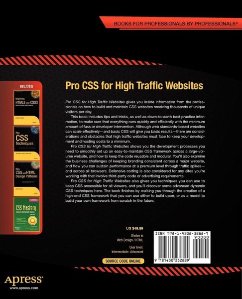 Although web standards-based websites can scale effectively-and basic CSS will give you basic results-there are considerations and obstacles that high traffic websites must face to keep your development and hosting costs to a minimum. There are many tips and tricks, as well as down-to-earth best practice information, to make sure that everything runs quickly and efficiently with the minimum amount of fuss or developer intervention. Targeted at "high traffic" websites-those receiving over 10,000 unique visitors a day-Pro CSS for High Traffic Websites gives you inside information from the professionals on how to get the most out of your web development team.