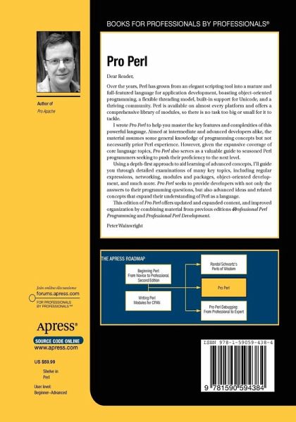 Pro Perl helps you master the key features and complexities of this powerful language. Aimed at intermediate and advanced developers alike, the material assumes some general knowledge of programming concepts but not necessarily prior Perl experience. However, given the expansive coverage of core language topics, Pro Perl also serves as a valuable guide to seasoned Perl programmers seeking to push their proficiency to the next level.