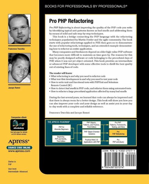 Many businesses and organizations depend on older high-value PHP software that risks abandonment because it is impossible to maintain. The reasons for this may be that the software is not well designed; there is only one developer (the one who created the system) who can develop it because he didn't use common design patterns and documentation; or the code is procedural, not object-oriented. With this book, you'll learn to identify problem code and refactor it to create more effective applications using test-driven design.