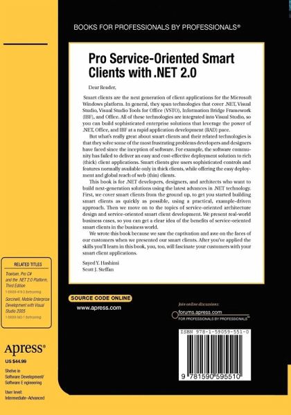This book satisfies growing demand for a professional resource on Smart Clients. This comprehensive book is unique because it touches all of the bases: agility, service orientation, testing intelligence, and even a definition of what the "smart" in Smart Client means.