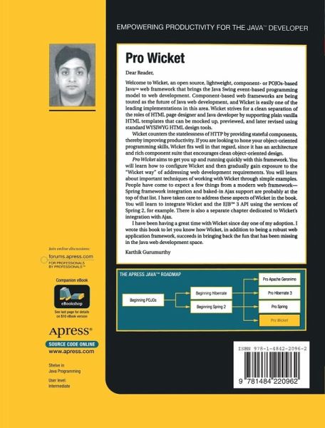 Is the first book to cover the Wicket framework with Spring integration and Ajax features Demonstrates all major wicket capabilities through simple examples Covers important aspects like Wicket-Spring integration and Ajax support