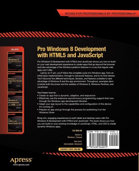 Each topic is covered clearly and concisely and is packed with the details you need to learn to be truly effective. The most important features are given a no-nonsense in-depth treatment and chapters contain examples that demonstrate both the power and the subtlety of Windows 8, Windows Runtime and Javascript.