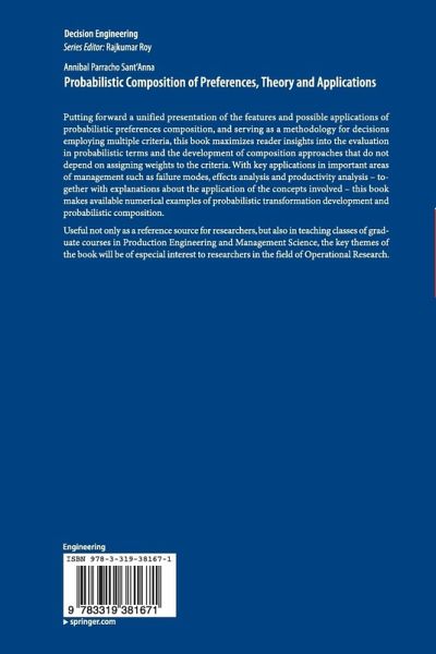 Putting forward a unified presentation of the features and possible applications of probabilistic preferences composition, and serving as a methodology for decisions employing multiple criteria, this book maximizes reader insights into the evaluation in probabilistic terms and the development of composition approaches that do not depend on assigning weights to the criteria.