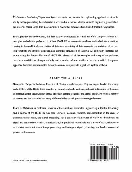 Since its original publication in 1971, this text has been a standard for signals and systems courses that emphasize probability. It provides an introduction to probability theory, statistics, random processes, and the analysis of systems with random inputs. The third edition will utilize MATLAB as a computational tool. It will be thoroughly revised to include new examples and problems, and updated to reflect the most current research and technologies. This book is intended for the junior/senior level engineering students.