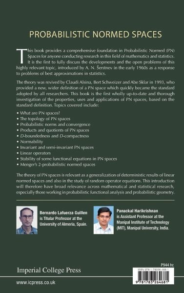 This book provides a comprehensive foundation in Probabilistic Normed (PN) Spaces for anyone conducting research in this field of mathematics and statistics. It is the first to fully discuss the developments and the open problems of this highly relevant topic, introduced by A N Serstnev in the early 1960s as a response to problems of best approximations in statistics. The theory was revived by Claudi Alsina, Bert Schweizer and Abe Sklar in 1993, who provided a new, wider definition of a PN space which quickly became the standard adopted by all researchers. This book is the first wholly up-to-date and thorough investigation of the properties, uses and applications of PN spaces, based on the standard definition. Topics covered include: What are PN spaces? The topology of PN spaces Probabilistic norms and convergence Products and quotients of PN spaces D-boundedness and D-compactness Normability Invariant and semi-invariant PN spaces Linear operators Stability of some functional equations in PN spaces Menger's 2-probabilistic normed spaces The theory of PN spaces is relevant as a generalization of deterministic results of linear normed spaces and also in the study of random operator equations. This introduction will therefore have broad relevance across mathematical and statistical research, especially those working in probabilistic functional analysis and probabilistic geometry.