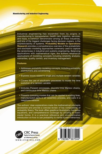 Balancing applications with mathematical rigor, Probability Models in Operations Research provides an introduction to the use of probability to define models that have applications in industrial engineering and operations research. With a concise review of the key components of probability theory, this book offers coverage of all basic model forms, probability modeling fundamentals, random variables analysis, multiple random variables analysis, Bernoulli processes, discrete-time Markov chains, Poisson processes, renewal processes, continuous-time Markov chains, and queueing theory. The text serves as a practical reference for those who use probability to model system behaviors.