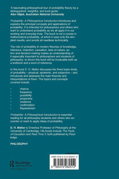 The role of probability in modern theories of knowledge, inference, induction, causation, laws of nature, action and decision-making makes an understanding of it especially important to philosophers and students of philosophy, to whom this book will be invaluable both as a textbook and a work of reference.
