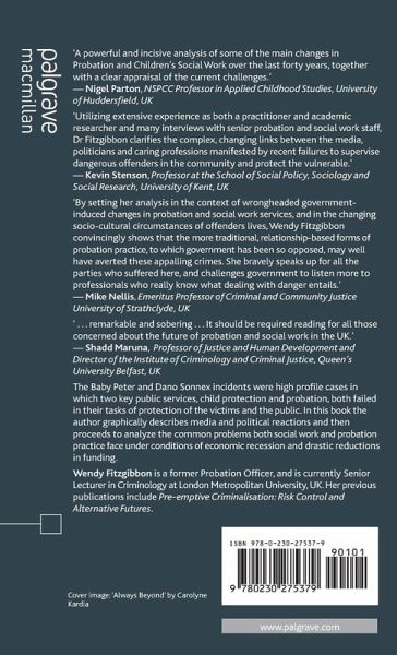 'In this work Dr Fitzgibbon is to be applauded for the way that she has directed her academic research and former practitioner rigour to critically examine and analyse recent historical shifts in the way that the probation service and social work have been pilloried, harried and scandalized [...] Its appraisal of how both services have arrived at this moment and what the outstanding challenges for future practice are makes for a salutary, authentic and challenging book that should be essential reading for all those concerned about the future of probation and social work.' - Probation Journal, 2012 59: 81 'A powerful and incisive analysis of some of the main changes in Probation and Children's Social Work over the last forty years, together with a clear appraisal of the current challenges.' -Nigel Parton, NSPCC Professor in Applied Childhood Studies, University of Huddersfield, UK 'Utilising extensive experience as both a practitioner and academic researcher and many interviews with senior probation and social work staff, Dr Fitzgibbon clarifies the complex, changing links between the media, politicians and caring professions manifested by recent failures to supervise dangerous offenders in the community and protect the vulnerable. The core task of the criminologist is to uncover the links between private problems and public issues. Fitzgibbon achieves this with enviably clear, jargon-free prose and from a tightly argued theoretical position.' - Kevin Stenson, Professor at the School of Social Policy, Sociology and Social Research at the University of Kent, UK 'In recent years, the probation service has repeatedly been accused of failing to manage high-risk offenders, never more so than in respect of Dano Sonnex who murdered two French students while under supervision in 2008. By setting her analysis in the context of wrongheaded government-induced changes in probation and social work services, and in the changing socio-cultural circumstances of offenders lives, Wendy Fitzgibbon convincingly shows that the more traditional, relationship-based forms of probation practice, to which government has been so opposed, may well have averted this appalling crime. She bravely speaks up for all the parties who suffered here, and challenges government to listen more to professionals who really know what dealing with danger entails.'- Mike Nellis, Emeritus Professor of Criminal and Community Justice University of Strathclyde, UK 'In the aftermath of tragedies like the Sonnex murders and the Baby P case there are only a few reactions possible: moral panic and penal over-reaction ('lock 'em up' and don't let anyone out); denial/minimalisation ('crisis, what crisis?'); or else a balanced, rational assessment of the situations in all of their historical, political and cultural contexts ('what must we learn from this?'). This 'post-traumatic growth' strategy is clearly the one adopted in this remarkable and sobering book. It should be required reading for all those concerned about the future of probation and social work in the UK.' -Shadd Maruna, Director of the Institute of Criminology and Criminal Justice, Queen's University Belfast 'The historical dimension [...] enables the discussion [...] to change gear and make a substantial excursion into sociology and social history. The author's aim is to show that the changes in the organisation and public image of social work and probation since the 1970s reflect much wider changes in the role and power of the mass media, in relations between the public and politicians, and, in particular, in the structure of the types of communities in which incidents such as the Baby Peter and Dano Sonnex cases are situated.' The Police Journal