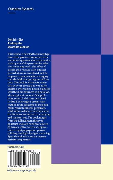 This book is devoted to an investigation of the vacuum of quantum elec trodynamics (QED), relying on the perturbative effective action approach. If the vacuum is probed with external perturbations, the response of the system can be analyzed after averaging over the high energy degrees of freedom. This results in an effective description of the properties of the vacuum, which are comparable to the properties of a classical medium. We concentrate primarily on the physics of slowly varying fields or soft photons by integrating out the high energy degrees of freedom, i.e. the elec trons, employing Schwinger's proper time method. We derive a new represen tation of the one loop photon polarization tensor, coupling to all orders to an arbitrary constant electromagnetic field, fully maintaining the dependence on the complete set of invariants. On the basis of effective Lagrangians, we derive the light cone condition for low frequency photons propagating in strong fields. Our formalism can be extended to various external perturbations, such as temperature and Casimir situations. We give a proof of the "unified formula" for low energy phenom ena that describes the refractive indices of various perturbed quantum vacua. In the high energy domain, we observe similarities between a vacuum with a superstrong magnetic field and a magnetized plasma. The question of mea surability of the various effects is addressed; a violation of causality is not found.
