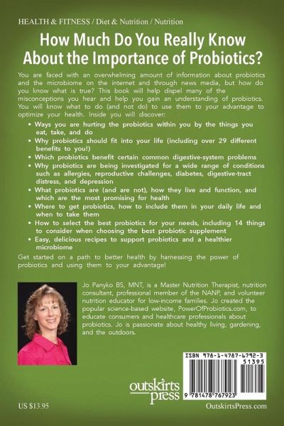 How Much Do You Really Know About the Importance of Probiotics? You are faced with an overwhelming amount of information about probiotics and the microbiome on the internet and through news media, but how do you know what is true? This book will help dispel many of the misconceptions you hear and help you gain an understanding of probiotics. You will know what to do (and not do) to use them to your advantage to optimize your health. Inside you will discover: Ways you are hurting the probiotics within you by the things you eat, take, and do; Why probiotics should fit into your life (including over 29 different benefits to you!); Which probiotics benefit certain common digestive-system problems; Why probiotics are being investigated for a wide range of conditions such as allergies, reproductive challenges, diabetes, digestive-tract distress, and depression; What probiotics are (and are not), how they live and function, and which are the most promising for health; Where to get probiotics, how to include them in your daily life and when to take them; How to select the best probiotics for your needs, including 14 things to consider when choosing the best probiotic supplement; Easy, delicious recipes to support probiotics and a healthier microbiome. Get started on a path to better health by harnessing the power of probiotics and using them to your advantage!