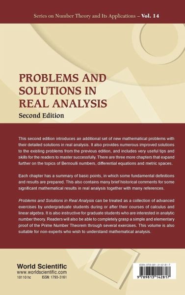 This second edition introduces an additional set of new mathematical problems with their detailed solutions in real analysis. It also provides numerous improved solutions to the existing problems from the previous edition, and includes very useful tips and skills for the readers to master successfully. There are three more chapters that expand further on the topics of Bernoulli numbers, differential equations and metric spaces. Each chapter has a summary of basic points, in which some fundamental definitions and results are prepared. This also contains many brief historical comments for some significant mathematical results in real analysis together with many references. Problems and Solutions in Real Analysis can be treated as a collection of advanced exercises by undergraduate students during or after their courses of calculus and linear algebra. It is also instructive for graduate students who are interested in analytic number theory. Readers will also be able to completely grasp a simple and elementary proof of the Prime Number Theorem through several exercises. This volume is also suitable for non-experts who wish to understand mathematical analysis.