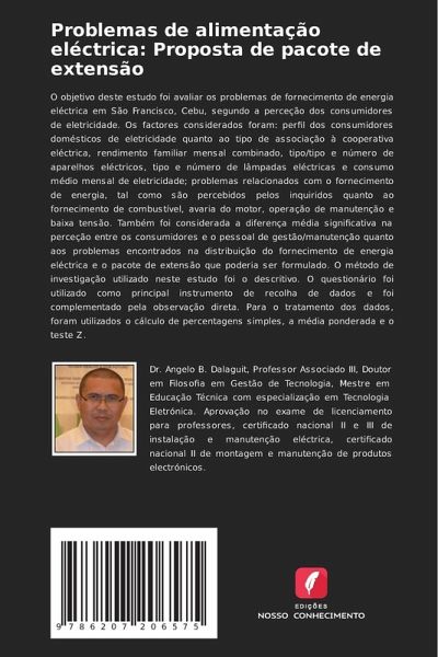 O objetivo deste estudo foi avaliar os problemas de fornecimento de energia eléctrica em São Francisco, Cebu, segundo a perceção dos consumidores de eletricidade. Os factores considerados foram: perfil dos consumidores domésticos de eletricidade quanto ao tipo de associação à cooperativa eléctrica, rendimento familiar mensal combinado, tipo/tipo e número de aparelhos eléctricos, tipo e número de lâmpadas eléctricas e consumo médio mensal de eletricidade; problemas relacionados com o fornecimento de energia, tal como são percebidos pelos inquiridos quanto ao fornecimento de combustível, avaria do motor, operação de manutenção e baixa tensão. Também foi considerada a diferença média significativa na perceção entre os consumidores e o pessoal de gestão/manutenção quanto aos problemas encontrados na distribuição do fornecimento de energia eléctrica e o pacote de extensão que poderia ser formulado. O método de investigação utilizado neste estudo foi o descritivo. O questionário foi utilizado como principal instrumento de recolha de dados e foi complementado pela observação direta. Para o tratamento dos dados, foram utilizados o cálculo de percentagens simples, a média ponderada e o teste Z.