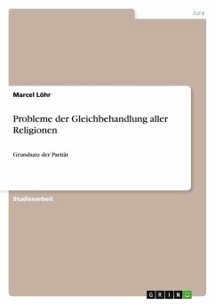 Studienarbeit aus dem Jahr 2007 im Fachbereich Jura - Öffentliches Recht / Staatsrecht / Grundrechte, Note: vollbefriedigend (11), Heinrich-Heine-Universität Düsseldorf, Sprache: Deutsch, Abstract: Betrachtet wird, ausgehend von einem historischem Rückblick, der ungeschriebene Grundsatz der Parität. Dieser Grundsatz beinhaltet mehrereTeilaspekte, wie das Prinzip staatlicher Neutralität, Trennung Staat-Kirche und die Glaubensfreiheit und spielt in vielen aktuellen Auseinandersetzungen mit religiösem Hintergrund eine entscheidende Rolle.Der Arbeit liegt der (gelungene) Versuch zu Grunde, das Paritätsprinzip auch für die Rechtsanwendung operabel darzustellen und auf Schutzbereich, Eingriff und Rechtfertigung hin zu untersuchen.Einführung: Hintergrund für den Begriff der ParitätA. Wortlautbedeutung von "Parität"Vom lateinischen Wort "par" (deutsch: gleich, bzw. gleichstark) stammend, meint Parität die Verpflichtung des Staates zur Gleichbehandlung aller Religionen auf Grundlage der Gleichrangigkeit aller Religionen. B. Ein historischer RückblickIn der nach Luthers Thesenanschlag 1517 folgenden Zeit der Reformation zerbrach die jahrhundertealte Einheit von Staat und Kirche und die Teilgebiete des Heiligen Römischen Reiches deutscher Nation wurden entweder weitgehend bis durchgehend katholisch oder protestantisch.Der Stabilität des Reiches wegen sollte mit dem Augsburger Religionsfrieden von 1555 langfristig zwischen den um Einfluss ringenden christlichen Glaubensgemeinschaften ein Reichsgesetz dauerhaft den Frieden sichern: "cuius regio, eius religio" ist der Grundzug des Gesetzes. Aber auch "aequalitas exacta mutuaque", so dass der Augsburger Religionsfrieden, auch wenn er nur bis 1618 relativ stabil blieb, als erste gesetzlich festgehaltene Grundlage des Paritätsprinzips gelten kann. Als weiterer Fortschritt auf dem Weg zur Religionsgleichbehandlung kann, nach dem grundlegend religiös motivierten Dreißigjährigen Krieg, die im Westfälischen Friede 1648 konsequent für die Reichsterritorien und Reichsstände festgelegte Regelung der föderalen Reichsstruktur auf Grundlage der Separierung der Konfessionen gelten - die damals getroffene Einteilung in katholische und lutheranische, bzw. reformierte Reichsterritorien konnte in der Folgezeit eine "relativ, neutral-paritätische Verfassungsordnung" begründen und wirkt sich noch bis heute auf die religiöse Vielfalt in den einzelnen Regionen Deutschlands aus. Einige wenige Städte des Reiches wurden aber auch protestantisch-katholisch durchmischt. [...]