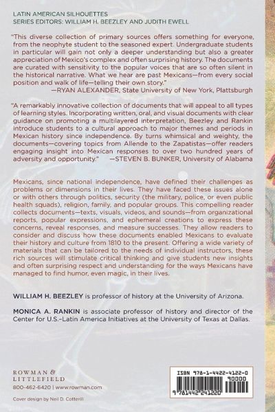 Mexicans, since national independence, have defined their challenges as problems or dimensions in their lives. They have faced these issues alone or with others through politics, security (the military, police, or even public health squads), religion, family, and popular groups. This unique reader collects documents—texts, visuals, videos, and sounds—from organizational reports, popular expressions, and ephemeral creations to express these concerns, reveal responses, and measure successes. They allow readers to consider and discuss how these documents enabled Mexicans to evaluate their history and culture from 1810 to the present. Offering a wide variety of materials that can be tailored to the needs of individual instructors, these rich sources will ¿stimulate critical thinking and give students new insights and often surprising respect and understanding for the ways Mexicans have managed to find humor, even magic, in their lives.