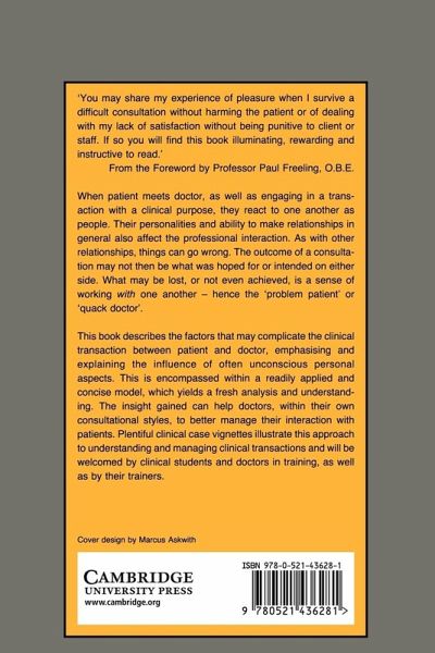 When patient meets doctor, as well as engaging in a transaction with a clinical purpose, they react to one another as people. Their personalities and ability to make relationships in general also affect the professional interaction. As with other relationships, things can go wrong. The outcome of the consultation may not then be what was hoped for or intended on either side. This 1994 book considers the factors which may cause problems in the doctor-patient relationship, emphasising and explaining the often unconscious personal aspects of doctor and patient within a model studied from various perspectives. Through this insight doctors can be helped to manage their interactions with patients within their own consultational style, thereby avoiding many unnecessary professional relationship problems. This analysis, which is well-illustrated by clinical case vignettes, is sure to be welcomed by clinicians, trainees and course organisers in all areas where communication between individuals plays an important role.