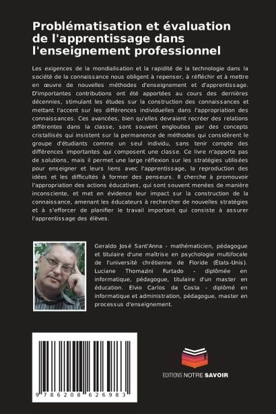 Les exigences de la mondialisation et la rapidité de la technologie dans la société de la connaissance nous obligent à repenser, à réfléchir et à mettre en oeuvre de nouvelles méthodes d'enseignement et d'apprentissage. D'importantes contributions ont été apportées au cours des dernières décennies, stimulant les études sur la construction des connaissances et mettant l'accent sur les différences individuelles dans l'appropriation des connaissances. Ces avancées, bien qu'elles devraient recréer des relations différentes dans la classe, sont souvent englouties par des concepts cristallisés qui insistent sur la permanence de méthodes qui considèrent le groupe d'étudiants comme un seul individu, sans tenir compte des différences importantes qui composent une classe. Ce livre n'apporte pas de solutions, mais il permet une large réflexion sur les stratégies utilisées pour enseigner et leurs liens avec l'apprentissage, la reproduction des idées et les difficultés à former des penseurs. Il cherche à promouvoir l'appropriation des actions éducatives, qui sont souvent menées de manière inconsciente, et met en évidence leur impact sur la construction de la connaissance, amenant les éducateurs à rechercher de nouvelles stratégies et à s'efforcer de planifier le travail important qui consiste à assurer l'apprentissage des élèves.
